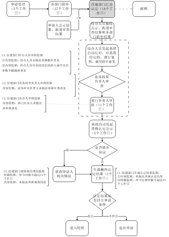 (三)住建部门汇总认定环节:由住建部门汇总街道(镇)及多部门联审结果出具审核意见、公示、结果认定等节点组成,办理时限不得超过18个工作日(含5个公示日)。