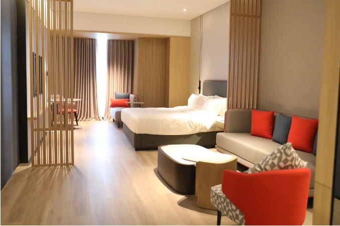 位于浮桥街道的智选假日酒店装修工程项目的建设现场同样火热。现场,工人们穿梭在各个区域,忙碌的身影和机器的轰鸣声交织在一起,奏响了施工建设的激昂乐章。据悉,该项目施工区域为3至8层,其中3层为酒店餐厅,4至8层为客房区域,预计建成将能提供客房102间。