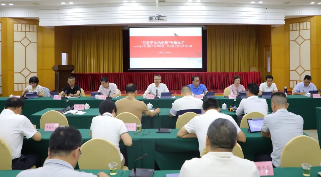 会议学习贯彻习近平法治思想,并邀请区委、区政府法律顾问、福建天衡律师事务所合伙人刘宗伟作“充分运用破产法律制度,助力优化法治营商环境”专题授课。