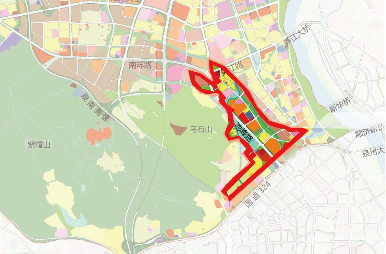 规划用地面积约2909亩(不含乌石山体),作为泉州中心城区南部门户,片区拟整合乌石滞洪区、乌石山体旅游开发、亭店古民居保护、展城业态提升等特色资源,打造作为泉州中心市区城市建设的燃点。片区内规划:可出让住宅/商住用地(775亩)、中小学用地(83亩)、滞洪湖(315亩),其余为道路、公园绿化等用地。