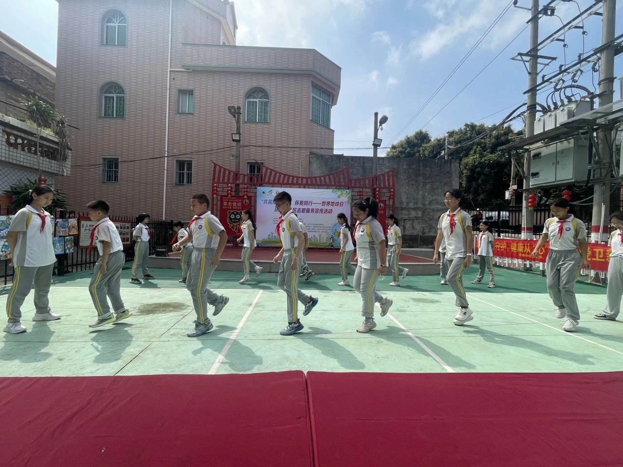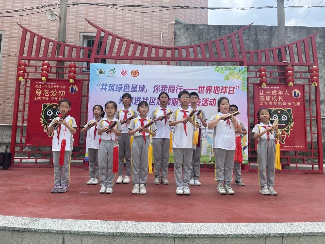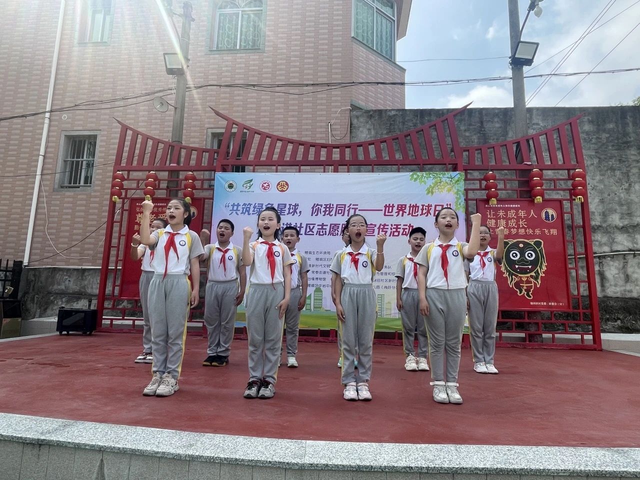 舞台区则洋溢着童趣与古韵的交响。华岩中心小学学子热情饱满地吟诵《给地球妈妈的信》,稚嫩声线里饱含对地球母亲的热爱。崇德幼儿园尚好分园的萌娃们则化身“环保小卫士”,用情景剧演绎环境保护趣事。闽南古韵《跳皮筋》将环保口号编入童谣,孩子们灵动的舞步跳出了绿色新时尚。最后,华岩小学的孩子们带来的刣狮表演压轴登场,传统民俗与环保主题的碰撞引发阵阵喝彩。