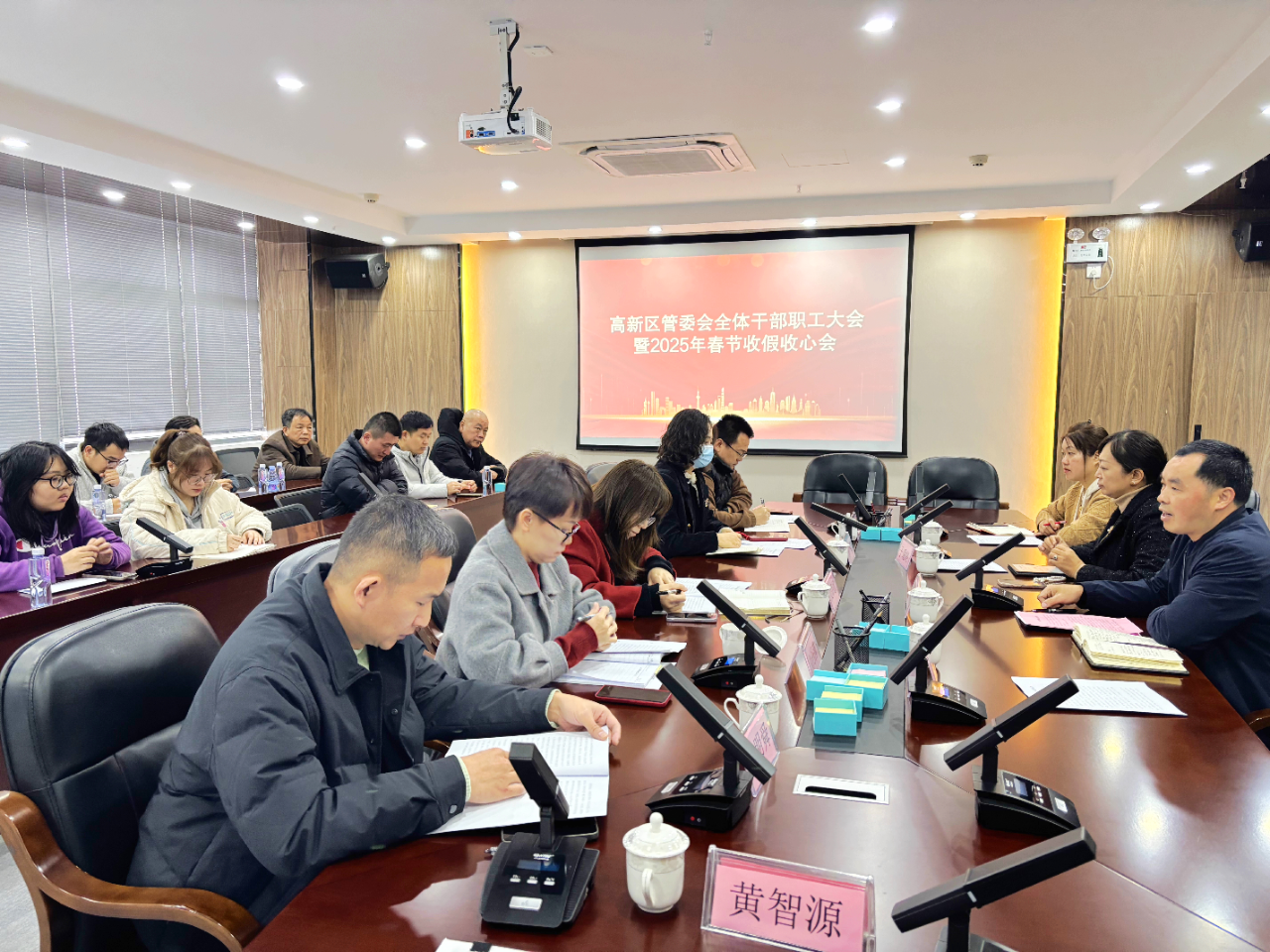 启一元复始,待四序更新。2月6日上午,高新区召开全体干部职工大会暨2025年春节收假收心会,传达学习省市区各级相关会议精神,部署新一年重点工作,动员全体干部职工迅速收心归位,以崭新的面貌和饱满的热情为今年的工作开好局、起好步、打好底。高新区管委会党组书记、主任张志强主持会议并讲话。
