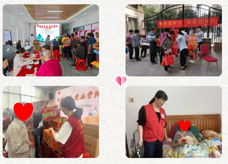 此外,各社区新时代文明实践站也纷纷开展活动,为辖区老人准备丰厚的节日礼包,为特殊老人提供亲情陪伴服务。