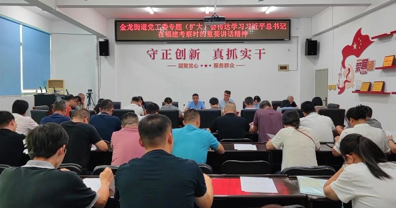 10月21日,金龙街道党工委书记黄伟民主持召开街道党工委(扩大)会,专题传达学习习近平总书记在福建考察时的重要讲话精神,以及省委常委会(扩大)会议精神、全省领导干部大会精神、市委常委会(扩大)会议、区委常委会(扩大)会议精神,部署街道贯彻落实意见。