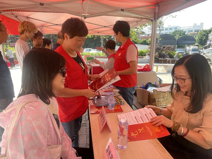 鲤城区交警大队四中队、江南派出所、江南司法所及江南街道各社区纷纷响应宪法宣传热点主题,组织“蒲公英”普法志愿者、法律明白人等利用活动举办期间人员密集、流动性好,普法宣传面广的优势,在辖区内开展普法宣传活动。通过发放普法宣传手册、现场答疑、进商户门店释法等多种形式,向过往群众及商户门店宣传《中华人民共和国宪法》、《中华人民共和国民法典》、《中华人民共和国反有组织犯罪法》、法律援助、物业管理条例等知识,让法律走到群众身边,走进群众心里,引导群众树立办事依法、遇事找法、解决问题用法、化解矛盾靠法的意识,号召商户坚守文明诚信立业之道,做到守法经营。