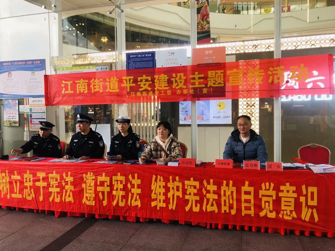 通过宪法宣传活动,进一步增强了群众的宪法意识,使法律融入到了群众的生活中。江南街道不断创新普法方式,以丰富多彩的形式开展宣传活动,用群众“看得见、容易懂、记得住”的方法进行宣传,不断增强普法实效,引导广大群众知宪法于心,守宪法于行,助力维护辖区安定稳定。