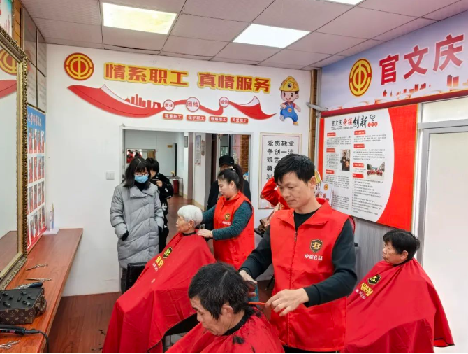 以新时代文明实践为依托,以居民需求为导向,优化志愿服务质量,2月19日,开元街道新时代文明实践所联合泉州市中保济困公益慈善中心、泉州市助孤公益协会在实践所中保义剪室为辖区退役军人、老年人、环卫工人、困难群众等提供义剪服务。
