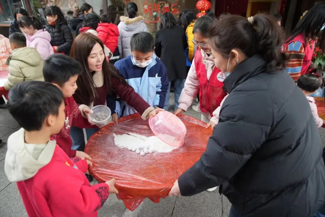 活动现场,欢声笑语回荡在整个园区,邻里间、同学间相互协作,拉近了彼此的距离,志愿者将刚煮好的热气腾腾的元宵圆与现场居民朋友一同分享,传递着温暖与祝福,展现出“三区联创”过程中邻里间互帮互助、团结一心的良好氛围。