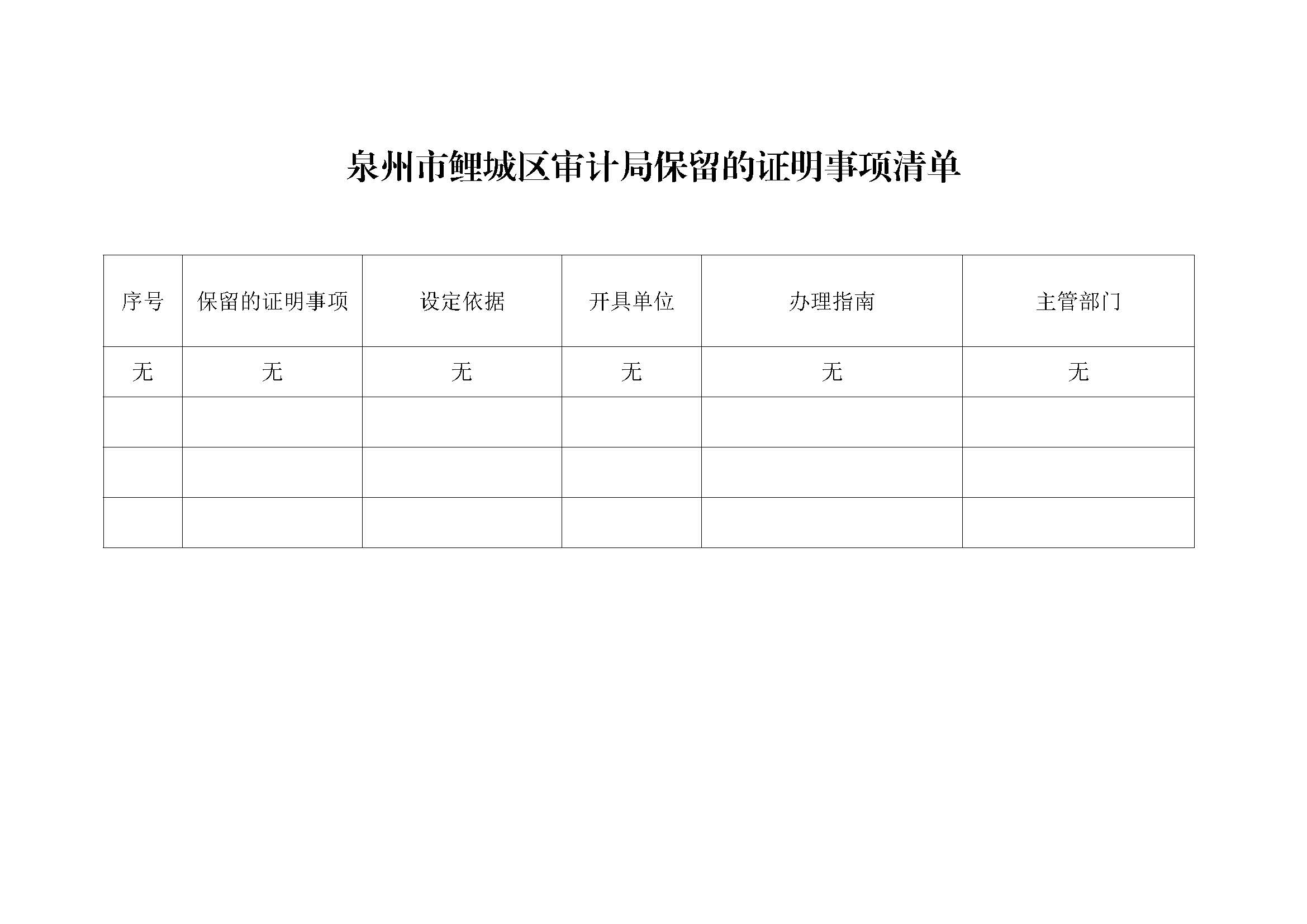 鲤城区审计局保留的证明事项清单