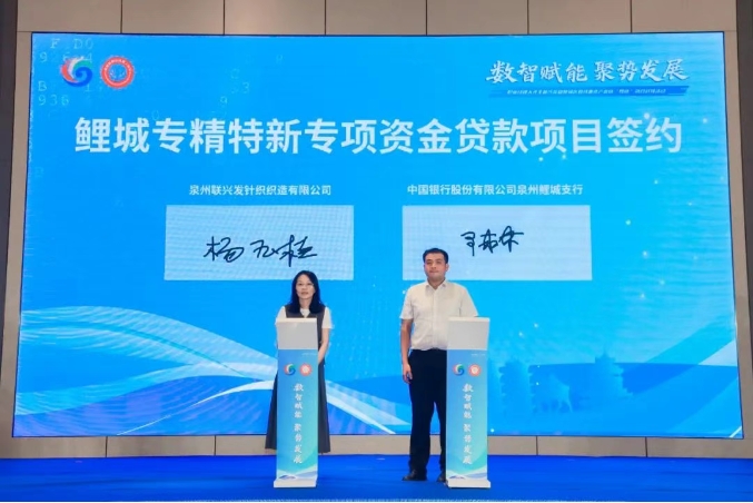 其余3个签约项目涵盖技术、资金、人才等方面合作,助力鲤城企业更好更快发展,泉州宝峰鞋业有限公司携手中国电信鲤城分公司开展数字化转型试点合作项目,探索鞋服产业“5G+AI质检”新模式;中国银行鲤城支行与泉州联兴发针织织造有限公司签订专精特新专项资金贷款协议,以金融“活水”精准助力企业发展;泉州海新服装材料科技有限公司与泉州职业技术大学艺术传媒学院合作产教融合项目,双方共建产教融合基地,加快推动新材料研发与产业化应用。