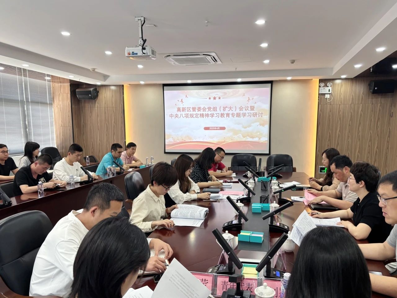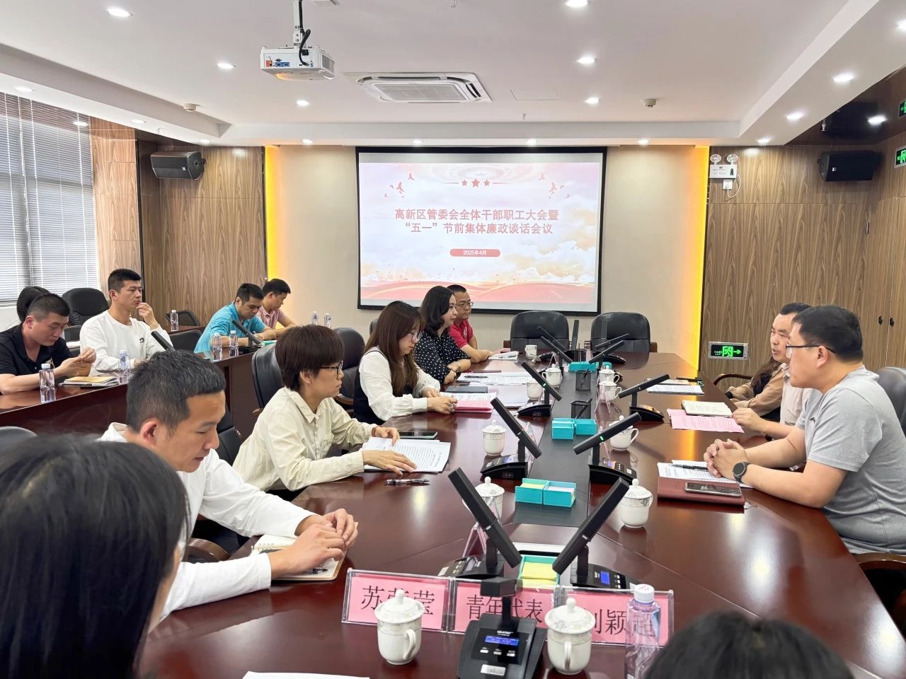 为深入贯彻中央八项规定精神,大力营造正风肃纪的浓厚氛围,切实净化干部队伍风气,确保清正廉洁过节,4月29日下午,高新区管委会党组召开理论学习中心组(扩大)专题学习研讨暨“五一”节前集体廉政谈话会。高新区管委会党组书记、主任张志强主持会议并作强调讲话,高新区管委会党组班子成员、全体干部职工参加会议。